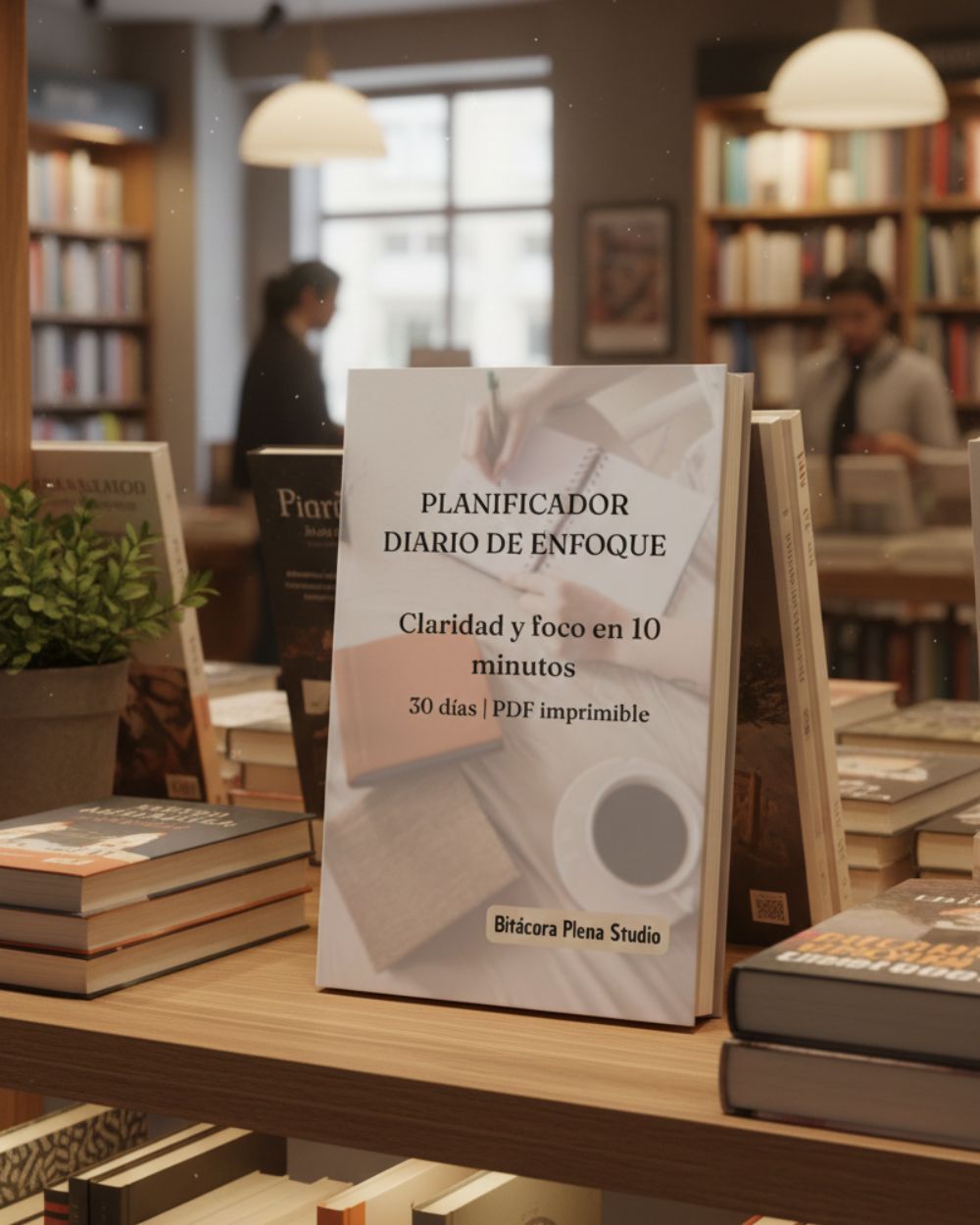 El Planificador Diario de Enfoque te guía durante 30 días para frenar el ruido, escribir con intención, ordenar prioridades y quedarte con una sola decisión clara por día.